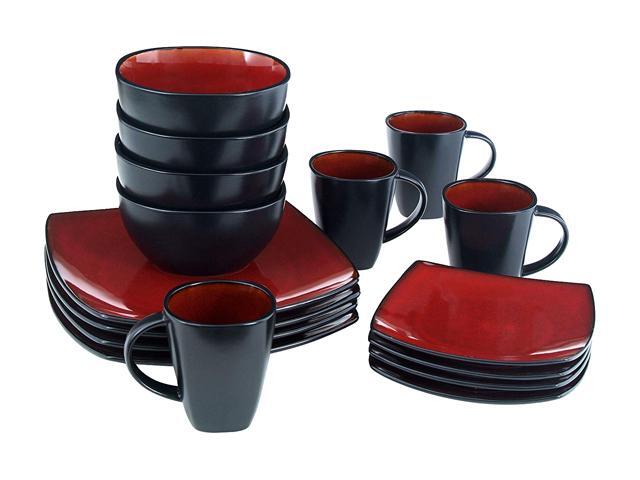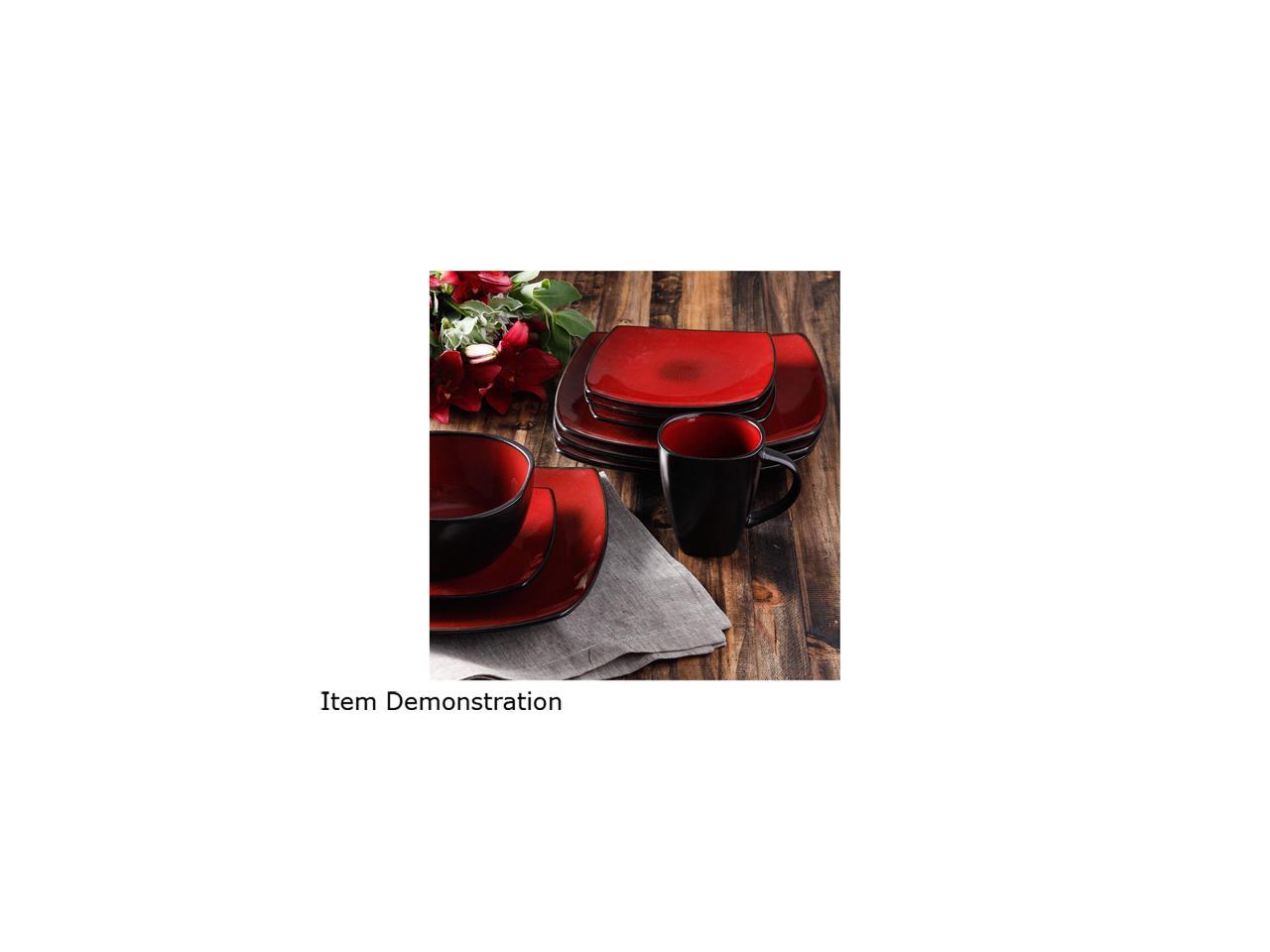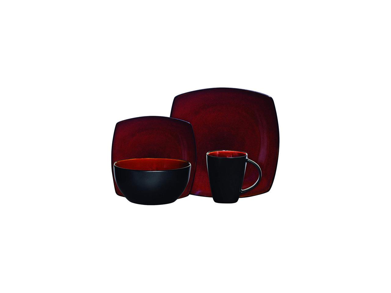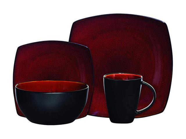 Soho Lounge 16 pc Dinnerware, Red Square Shape (Service for 4)