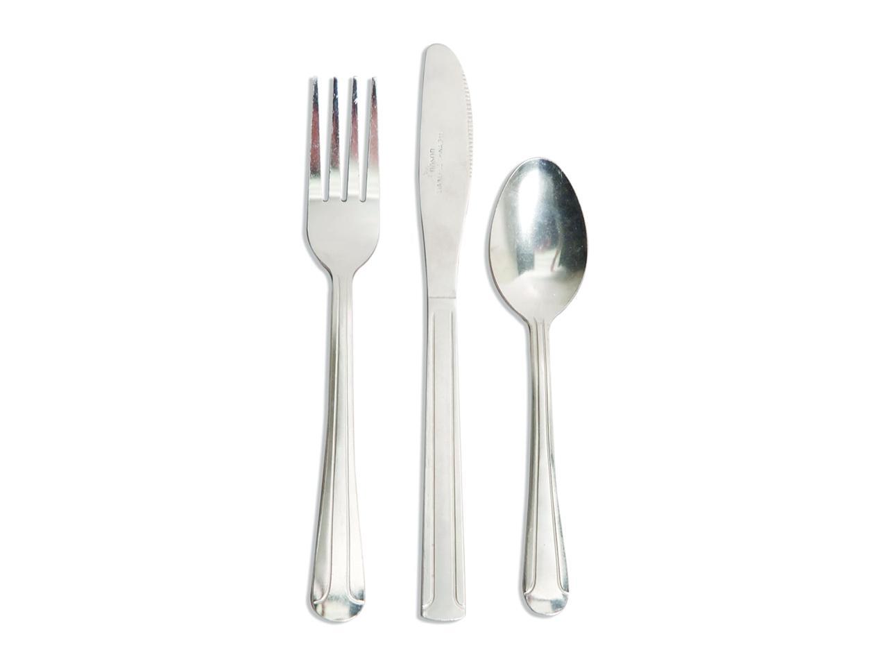 - 12 piece flatware set includes 4 dinner knives, 4 dinner forks, and 4 dinner spoons