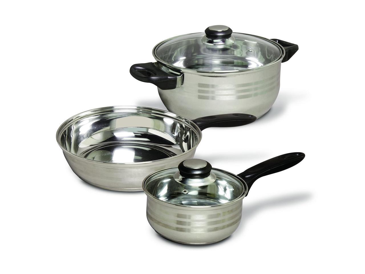 - 5 piece cookware set includes a saucepan with lid, dutch oven with lid, and frying pan