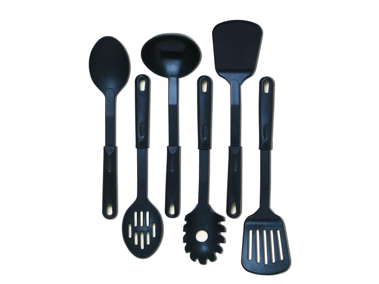 - 6 nylon piece tools include a ladle, slotted spoon, solid spoon, turner, slotted turner, and pasta server