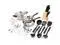 • 6 nylon piece tools include a ladle, slotted spoon, solid spoon, turner, slotted turner, and pasta server