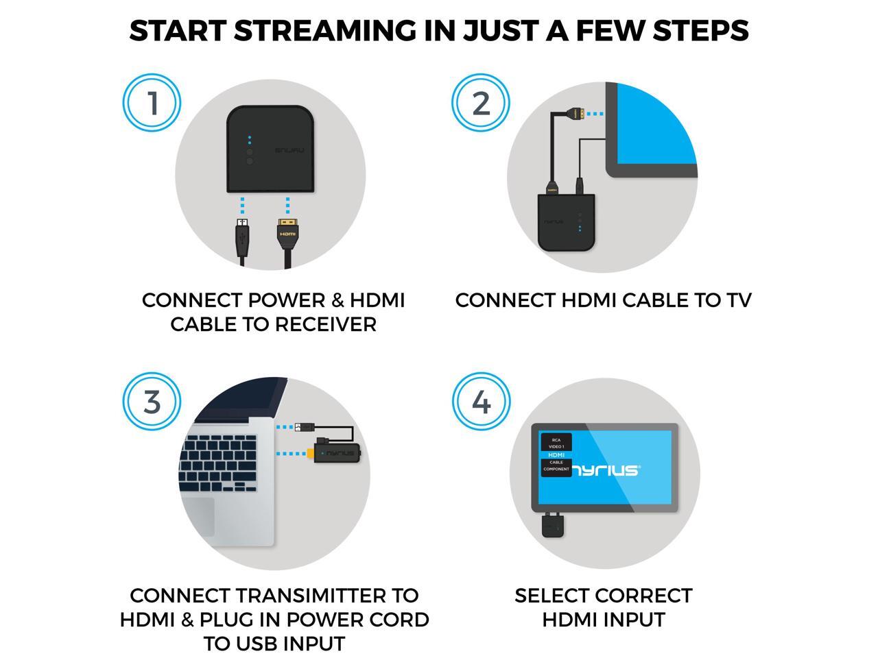 Nyrius ARIES Pro Wireless HDMI Transmitter and Receiver To Stream HD 1080p 3D Video From Laptop, PC, Cable, Netflix, YouTube, PS4, Drones, Pro Camera - 1 Year Extended Warranty