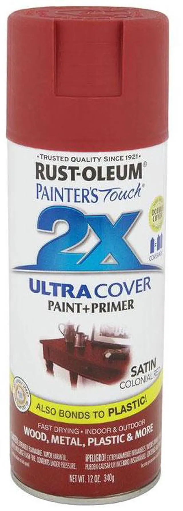 liBrand Name: Rust-Oleum Sub Brand: Painter's Touch Ultra Cover Sheen: Satin Color: Colonial Red Product Type: Spray Paint Container Size: 12 oz. UV Resistant: Yes Coverage Area: 10-12 sq. ft. Inverted Spray Ability: Yes Recommended Surface: All Surfaces Clean Up: Mineral Spirits Indoor or Outdoor: Indoor and Outdoor Time Before Recoating: 1 hr. Mildew Resistant: No Primer Required: No Dry Time: 20 min Usage: Multi-Purpose liliDepartment - PAINT AND CLEANING SUPPLIESlilimdseClass - SPRAY PAINTSliliprodGroup - GENERAL PURPOSEli