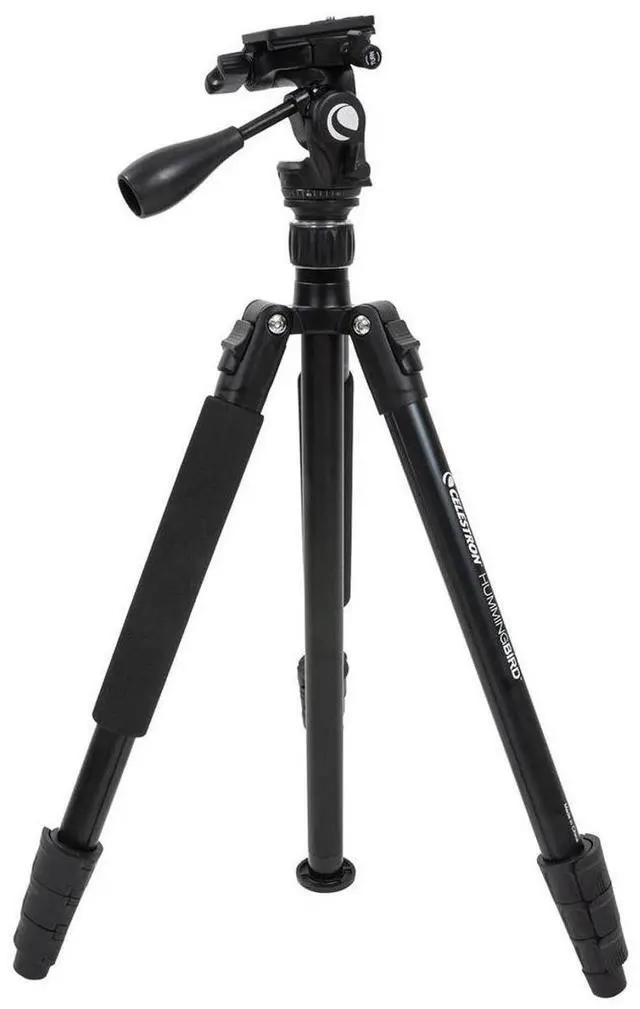 The Hummingbird tripod is an excellent choice for those seeking a lightweight yet stable platform for a spotting scope binocular or camera. With four leg sections three leg angles and an adjustable center column the tripod can be set in multiple configurations to get the exact height or stance needed for your terrain and conditions. Use the panning handle and tension knob to scan across the horizon in smooth motions and follow your subject as it moves. The Hummingbird is the perfect tripod for any outdoor excursion from bird watching to stargazing and everything in between.