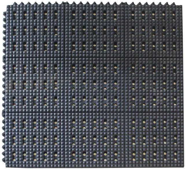 pAnyone who has stood on a hard concrete floor for longer than a few minutes will tell you how hard the surface can be on your feet, knees and back. Reduce the fatigue and soreness with the AmeriHome Anti-Fatigue Industrial Interlocking Rubber Floor Mats. Four 3 by 3 ft. flexible Rubber Mats interlock on 2 sides, to create a custom shape for your space that covers up to 36 square feet of space. Perforated rubber 12 inch (14mm) thick provides cushion, and the non-slip surface gives you more traction when grease and other liquids get spilled.
