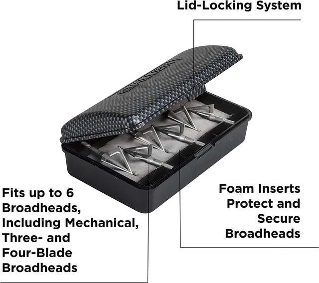 Allen Company Titan Broadhead Box & Caddy, Holds 6 Broadheads, Broadheads With Closed Width Up To 1-38 Inches, Carbon Fiber Fits Most Three- And Four-Blade Broadheads High Impact Carbon Fiber Look Case Lid-Locking System Prevents Broadheads From Shaking Loose Foam Inserts Protect And Secure The Broadheads Compact Size Fits In Your Bow Case Or Backpack Interior Lid Locking Systeman Interior Lid-Locking System Prevents The Broadheads From Shaking Loose And Ensures Little To No Blade Surface Contact Foam Inserts Protect & Securethe Stiff Foam Insert And Precise Notching In The High Impact Rated Polymer Case Interior Provides Secure Protection For Up To Six Broadheads Fits Up To 6 Broadheads - All Typeseasily Accommodates Most Fixed 3- And 4-Blade Styles As Well As Mechanical And Removable Blade Broadheads Protect One Of Your Most Important Hunting Accessories - Your Broadheads - With Allens High Impact Broadhead Case This Case Will Fit Most Three- And Four-Blade Broadheads As Well As Most Mechanical Broadheads An Interior Lid-Locking System Prevents The Broadheads From Shaking Loose And Helps Hold Them In With Little To No Bladesurface Contact Features: Fits Up To 6 Broadheads, Including Mechanical, Three-, And Four-Blade Broadheads Foam Inserts Protect And Secure Broadheads Lid-Locking System Carbon Fiber Look