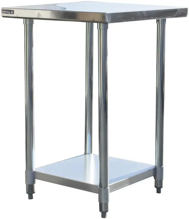 pThe Sportsman Series Stainless Steel Work Table is the perfect addition to your kitchen, garage, or basement. A smooth 24 x 24 in. work surface is ideal for preparing food and processing meat, and is large enough to complete most arts and crafts projects. The 35 inch height is ideal for cooking and working without making your back ache. Adjustable galvanized metal shelf fits under the table and provides additional storage space for supplies. The contemporary and modern industrial look is sleek enough to display in retail spaces and modern kitchens, so you have wont to hide this work table out of sight.