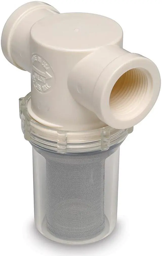 Os family of Raw Water Strainers are built to keep your bait tank, livewell and washdown pumps protected from harmful debris. The Raw Water Strainer features a clear twist off bowl and removable stainless steel screen, which allows for easy inspection and cleaning. An integral o-ring creates a tight seal, eliminating possible leaks. Keep your pumps and components lasting longer by protecting them with the SHURFLO Raw Water Strainer. 1 Year Warranty