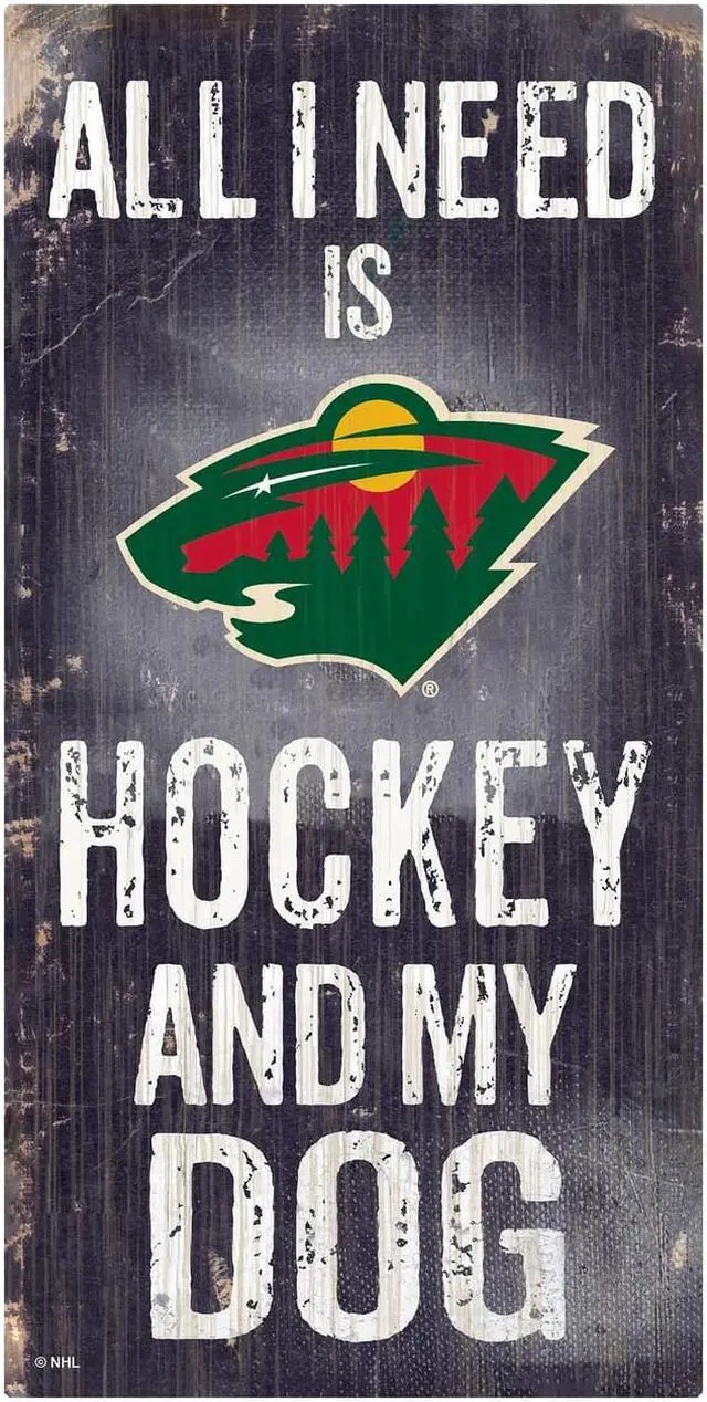 Minnesota Wild Sign Wood 6x12 Hockey and Dog Design