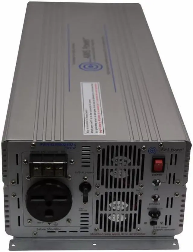 Inverter, Features AC Output Short Circuit Protection, Direct Connect Terminal Block for Full Load Applications, Externally Located Re-Settable Circuit Breakers, On/Off Switch, Over Load LED Indicator, Over Load Protection, Over Temperature LED Indicator, Over Temperature Protection, Overload Fail LED - Red, Percent Load Usage LED Bar, Pre-Wired for Remote On/Off Switch, Thermally Controlled Fan, Output Form Modified Sine Wave, DC Connection Input Terminals, Continuous Output Power 7, 000 W. This item has been restricted from sale in the following state (s): []