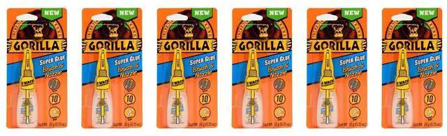 Gorilla super glue brush & nozzle offers two easy ways to dispense for control and accuracy. Brush & nozzle features a precision tip nozzle and fine bristle brush that allows the user to control their super glue application, making it perfect for any project. Use of the brush versus the nozzle is up to the users preference. The fine bristled brush is designed for controlled coverage with less mess. The precision tip nozzle is designed for quick, easy dispensing. Gorilla super glue brush & nozzle uses the same formula as original Gorilla super glue.