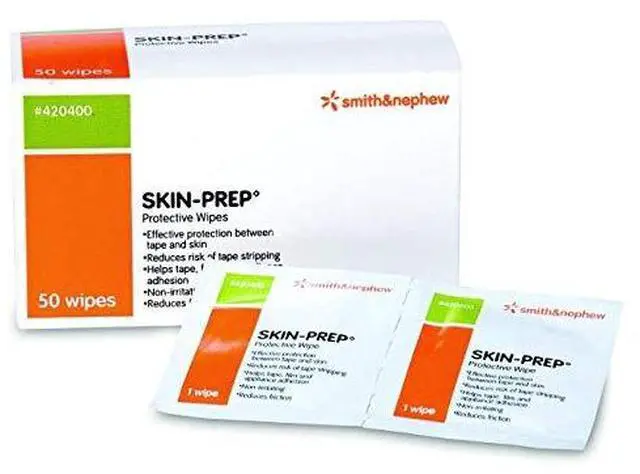 Skin-Prep Protective Wipes forms a barrier between the patient's skin and adhesives to help preserve skin integrity and prevent insult or injury during removal of tapes and films. Proven EffectivenessA series of tests under a scanning electron microscope suggest that Skin-Prep provides effective protection against adhesive trauma. Improves AdhesionSkin-Prep allows skin to "breathe" so tapes and films adhere better and longerEnhanced adhesion increases the interval between dressing changes to save nursing timeLess frequent application and removal of adhesive dressings reduces the risk of damage to delicate skinNon-Sensitizing FormulaSkin-Prep contains Citroflex for added safety and reliable protection with virtually no irritation or allergic reactions.