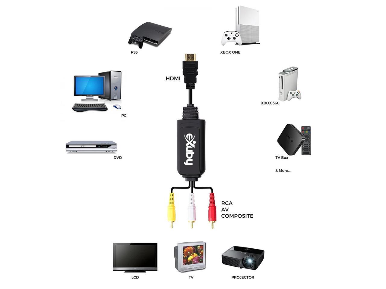 HDMI to RCA Cable - Hassle Free - Converts Digital HDMI signal to Analog RCA/AV - Works w/ TV/HDTV/XBOX 360/PC/DVD & More - All-In-One Converter Cable Saves You Money - HDMI to AV Converter