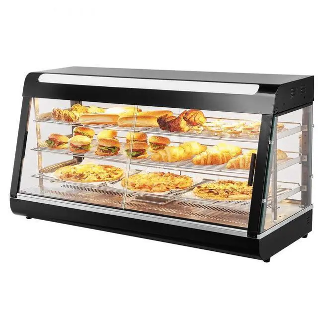 Commercial Food Warmer Display A Food Warmer Display That Integrates Insulation And Display Functions Is Essential For Every Restaurant. Choose Vevor'S Food Warmer Display To Take Your Business To The Next Level. The Temperature Controller Adjusts Heating Temperatures Between 86&Deg;F~185&Deg;F. The Thermostat Mode Maintains Food At The Selected Temperature To Prevent Overheating, Making It Ideal For Commercial Food Service. The Food Display Cabinet Features 3 Adjustable Shelves, Providing Ample Storage Space For Displaying Pizzas, Hamburgers, Fried Chicken, Hot Dogs, And More. Widely Used In Bakeries, Cafes, And Buffets. Equipped With A Built-In 0.5L Water Tray, Adding Water Provides Perfect Humidity For The Food, Preventing Excessive Drying Caused By Heating And Maintaining The Best Texture Of The Ingredients. The Overall Design Is Modular, With Detailed Written Instructions And Labeled Parts For Quick Assembly. Made Of High-Quality Stainless Steel And Tempered Glass, Designed For Heating And Displaying Food, With Decorative Lighting To Make Food More Enticing And Shiny.
