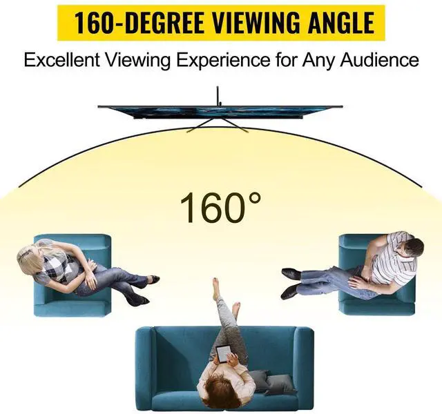 : 60&Quot; Tripod Projector Screen Our Projection Screen Portable Features 16:9 4K Hd And A 160-Degree Viewing Angle, Providing Clear And Vivid Imagery. You Will Enjoy The Beautiful Movies, Pictures, Games And Spend More Time With Your Family And Friends. The Projector Screen Stand Is Height Adjustable To Meet Your Diverse Needs. With An Aluminum Tripod And Wrinkle-Free Polyester Surface, This Video Screen Is Ideal For Home Theater, Meeting Room, Weddings, And Even Outdoors Like Camping And Backyard Movie Night. 4K Hd Vivid Imagery Wide-Angle Screen Height Adjustment Portable &Amp; Easy Setup Tough Equipment &Amp; Tools, Pay Lessvevor Is A Leading Brand That Specializes In Equipment And Tools. Along With Thousands Of Motivated Employees, Vevor Is Dedicated To Providing Our Customers With Tough Equipment &Amp; Tools At Incredibly Low Prices. Today, Vevor Has Occupied Markets Of More Than 200 Countries With 10 Million Plus Global Members. Why Choose Vevor? Premium Tough Qualityincredibly Low Pricesfast &Amp; Secure Delivery30-Day Free Returns24/7 Attentive Servicetough Equipment &Amp; Tools, Pay Lessvevor Is A Leading Brand That Specializes In Equipment And Tools.