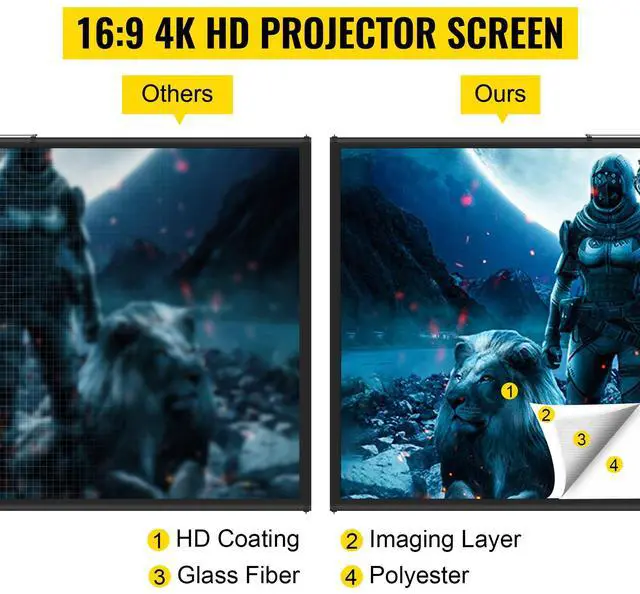: 100&Quot; Tripod Projector Screen Our Projection Screen Portable Features 16:9 4K Hd And A 160-Degree Viewing Angle, Providing Clear And Vivid Imagery. You Will Enjoy The Beautiful Movies, Pictures, Games And Spend More Time With Your Family And Friends. The Projector Screen Stand Is Height Adjustable To Meet Your Diverse Needs. With An Aluminum Tripod And Wrinkle-Free Polyester Surface, This Video Screen Is Ideal For Home Theater, Meeting Room, Weddings, And Even Outdoors Like Camping And Backyard Movie Night. 4K Hd Vivid Imagery Wide-Angle Screen Height Adjustment Portable &Amp; Easy Setup Tough Equipment &Amp; Tools, Pay Lessvevor Is A Leading Brand That Specializes In Equipment And Tools. Along With Thousands Of Motivated Employees, Vevor Is Dedicated To Providing Our Customers With Tough Equipment &Amp; Tools At Incredibly Low Prices. Today, Vevor Has Occupied Markets Of More Than 200 Countries With 10 Million Plus Global Members. Why Choose Vevor? Premium Tough Qualityincredibly Low Pricesfast &Amp; Secure Delivery30-Day Free Returns24/7 Attentive Servicetough Equipment &Amp; Tools, Pay Lessvevor Is A Leading Brand That Specializes In Equipment And Tools.