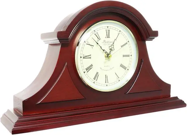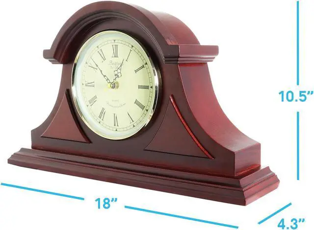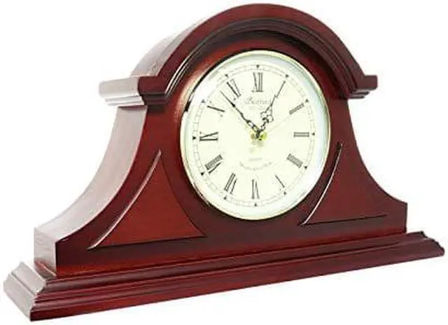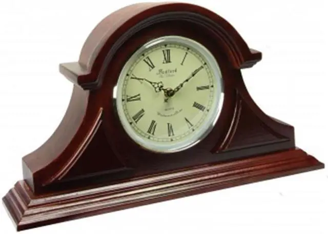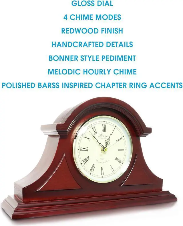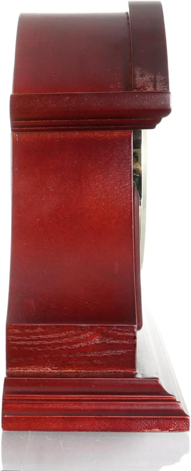 This exquisite Mantel clock features a Redwood oak finish case. Rich and deeply colored it is timeless and exquisite. The dial is bright and perfectly brings forward the roman numerals for your ease. This classic Mantel clock is a stunning addition to any room, whether it is above a fireplace or on a desk. Has 4 chime settings and volume control.