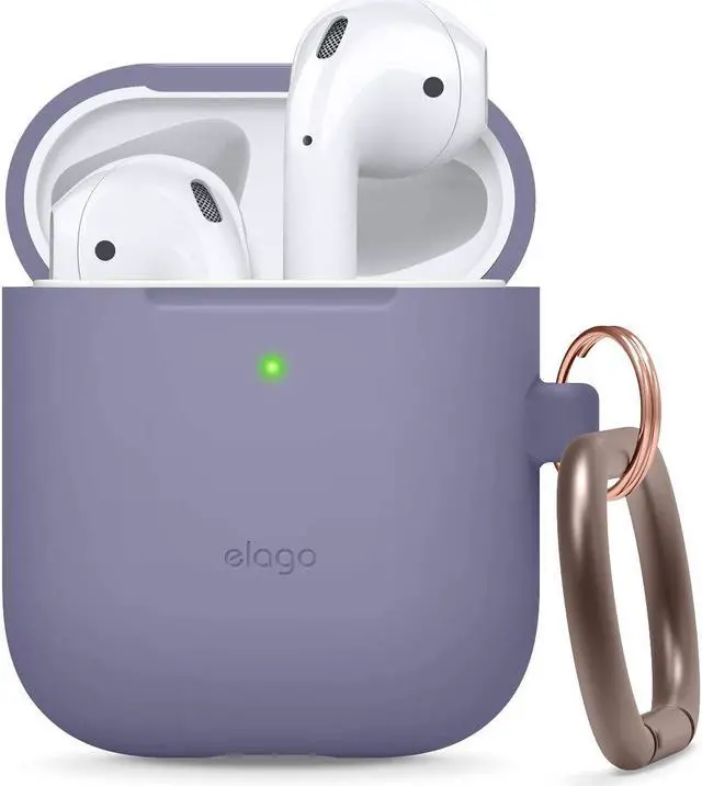 elago Silicone case with Keychain compatible with Apple AirPods case 1 & 2, Front LED Visible, Supports Wireless charging, Protective Silicone Lavender grey]