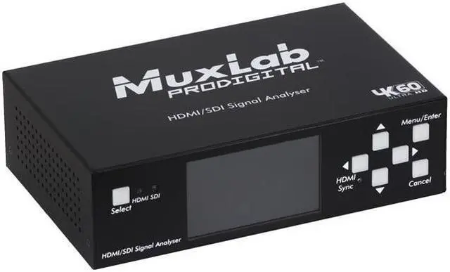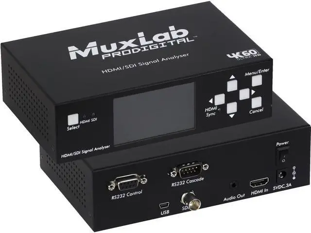 This Signal Analyzer is a portable test tool that is able to analyze SD/HD/3G SDI and HDMI 2.0 test patterns in a full range of resolutions up to 4K@ 60Hz (4:4:4). The unit assists users in validating the capabilities and proper operation of their source devices. When used with the 500830 Signal Generator, a useful set of cable connectivity/quality tests, and device compatibility tests can be performed to help identify problems. The device is an exceptional tool at an attractive price for any AV engineer/developer, Integrator and installer.