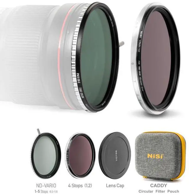 The Swift System also comes with an exposure range-control filter ring with hard stops at each end so you can easily dial in your desired effect. With its high definition optical glass nano-coating True Color result that avoids color shift seen in other Variable filters and no ""X"" effect this ND filter is sure to give you the results you desire. So why wait? Get the NiSi Swift System today and see what all the fuss is about! The NiSi Swift True Color VND Kit 1-9 stops (1-5 Stops VND + 4 Stop ND) includes a NiSi True Color 1-5 Stop VND and an ND16 (4 Stop) ND that can be combined to cover a range of 1-9 stops making this one of the most versatile variable ND kits on the market.