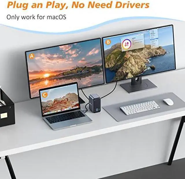 Your MacBook Pro/Air: The TOBENONE MacBook Pro docking station dual monitor is compatible with your MacBook Pro 2016/2017/2018/2019/2020 (Not M1), MacBook Air 2018/2019/2020 (Not M1). This dual-monitor adapter for MacBook Pro/Air features 2 4K HDMI ports, 1x VGA, 4 x USB 3.0, 1 x USB C, 2xUSB 2.0, 3.5 mm Audio, and RJ45. Less heat, more stable with 13 ports, more features, more possibility, and plug and play, without any driver or software. M1 Macbook only can extend one monitor.