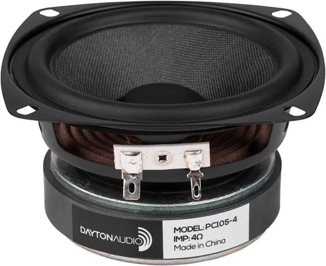 Dayton Audio' s PC105-4 4" full-range driver will deliver smooth and natural response from extremely compact designs. When used in line arrays, portable speakers, sound bars, or as a dedicated midrange in 3-way designs this driver will prove to be an excellent value.