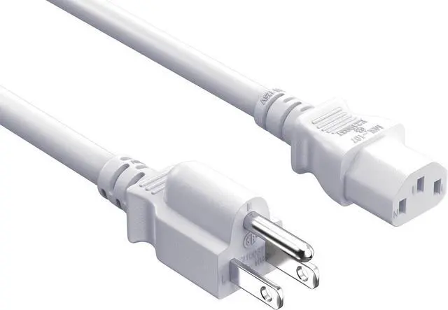 Cable Leader 18 AWG White Universal Power Cord IEC320 C13 to NEMA 5-15P UL Listed 6 Foot