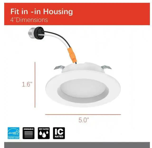 The Commercial Electric 4 in. Color temperature select LED downlight is an easy way to upgrade your existing can lights to the sleek look of recessed lighting and LED energy efficient technology. These LED downlights are compatible with most dimmer switches and are equipped with a unique color temperature (CCT) changing technology. Now you can select your color temperature depending on your needs or preferences with the flip of a switch located on the back of the downlight. Test different color temperatures before installation and never be dissatisfied with CCT again. Color temperature of these LED downlights ranges from Warm White (2700K) to-daylight (5000K), with 3 options in between: Soft White (3000K), Neutral White (3500K) and Bright White (4000K). Using only 8.5-Watt of energy but produce brightness comparable to a 65-Watt incandescent bulb, these LED downlight bulbs are estimated to cost only $1.36 per-year to operate. Additionally, these LED downlights are rated to last for 50,