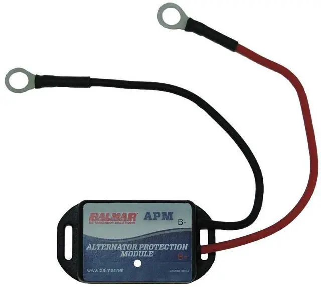 liAlternator Protection Module Apm24 - 24V Alternators Can Be Subjected To Voltage Spikes Caused By Lithium Battery Shutdowns, Intermittent Connections, And Other Over-Voltage Eventslili Balmar Has Introduced A Robust Alternator Protection Module Which Helps To Protect The Alternator&Rsquo; S Diodes And Internal Voltage Regulator Against Spikes (Clamping Up To 60V) And Sustained Over-Voltage Conditions (Beginning Around 20V For The 12V Version) lili The Apm Can Absorb Multiple Surges Of Such Energy And Can Absorb Surges In Excess Of 200 Amps Without Failure To Continually Protect Your Alternatorlili Visual And Audible Alarms Indicate If The Device Has Been Compromised And Needs Replacementlili Balmar Apm Devices Provide Intelligent, Robust, Solid-State Protection In A Small Easily Mounted Package At The Rear Of The Alternator Between The B+ And B- Terminalslili Balmar Apm Devices Can Be Used To Protect All Alternator Brandslili Balmar Apm Devices Meet Iso 16750-2 For Load Dump Protection