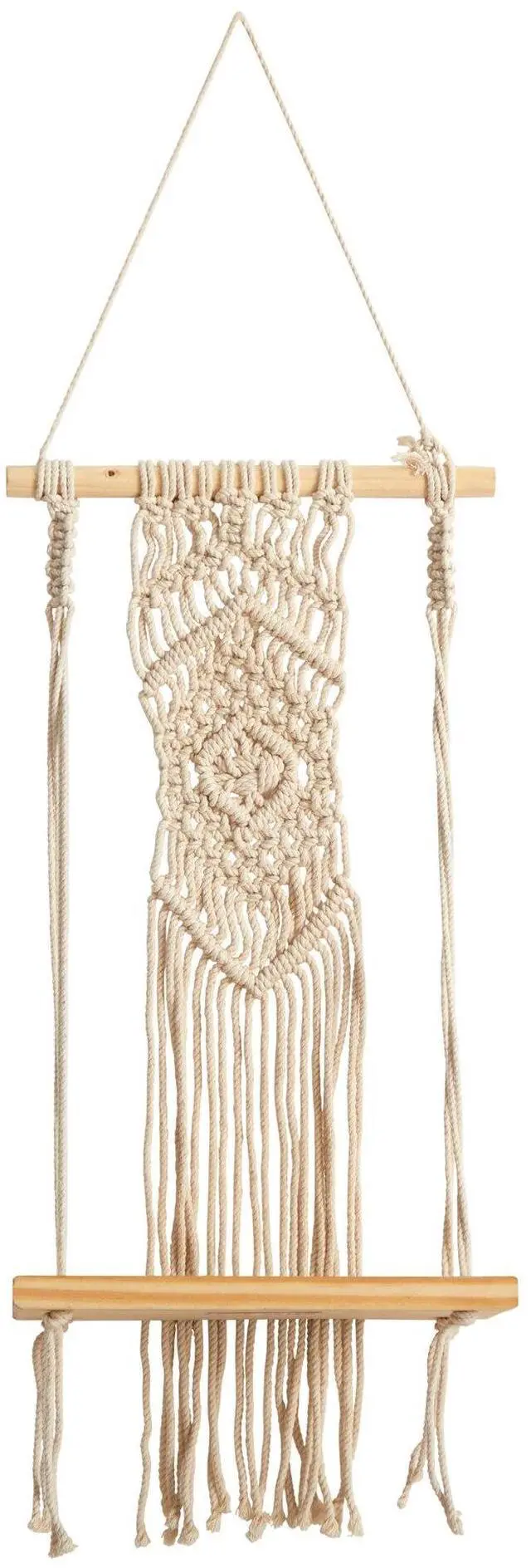 • 22 Boho Chic Wood Macrame Shelf with Diamond Weave