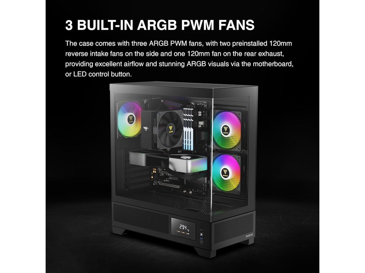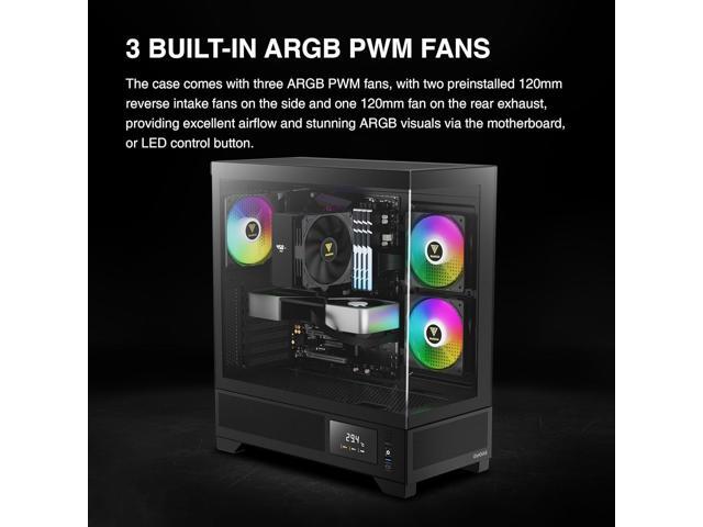 - 3 Built-in 120mm ARGB PWM Fans (2 x Intake Fans)