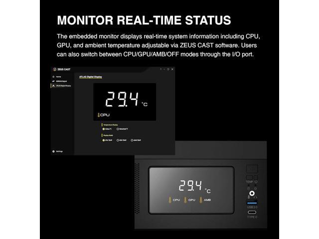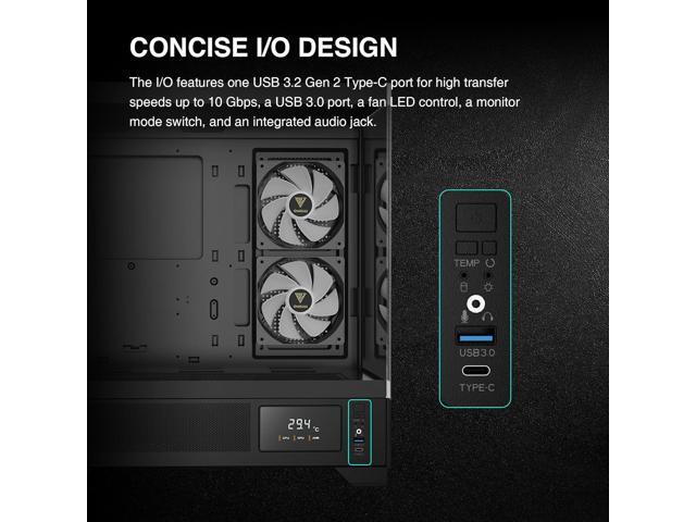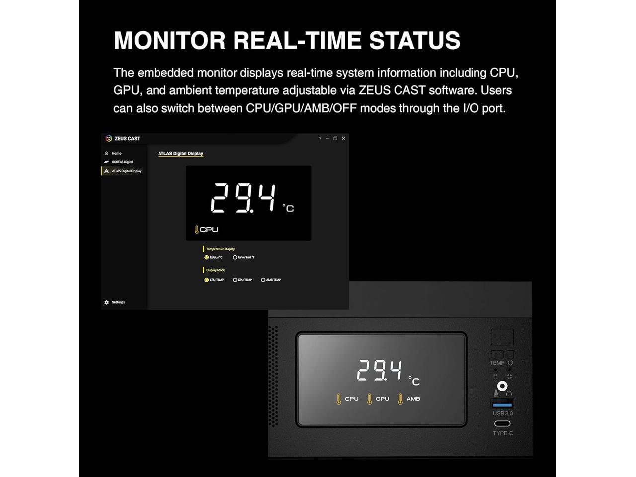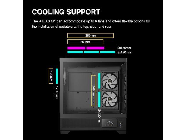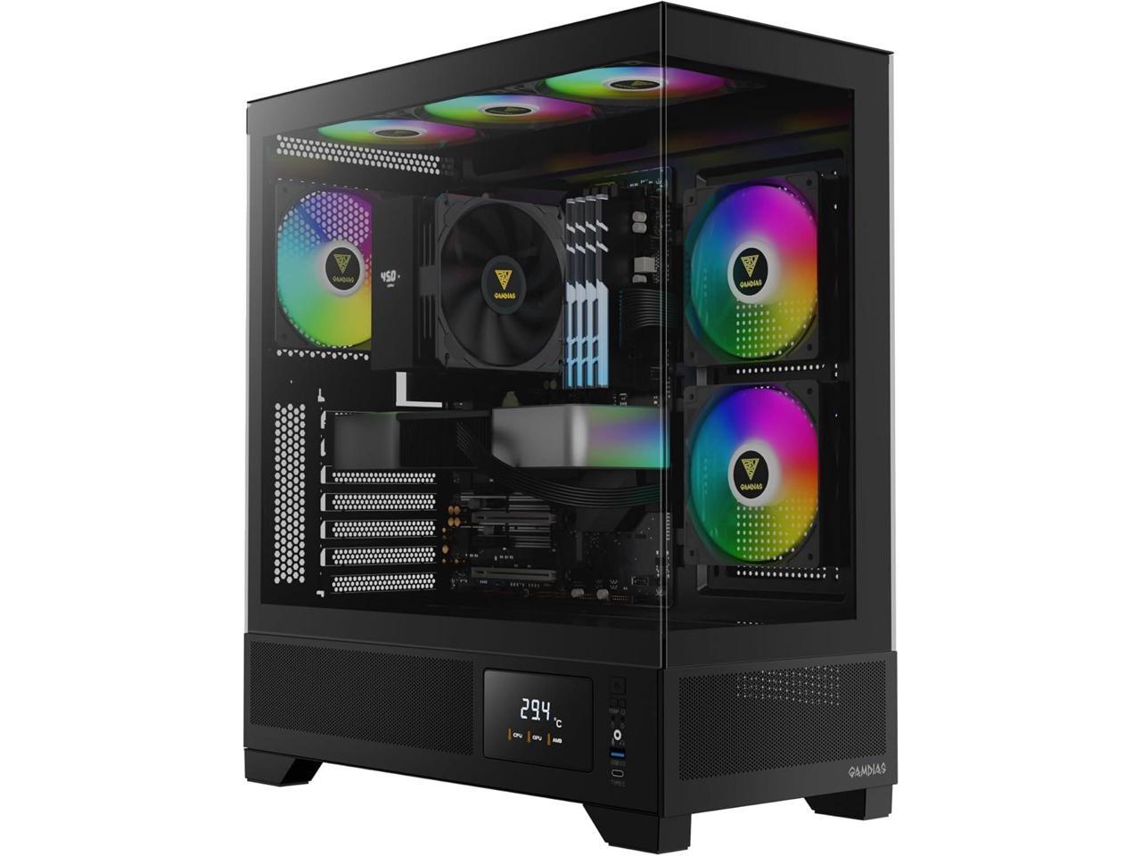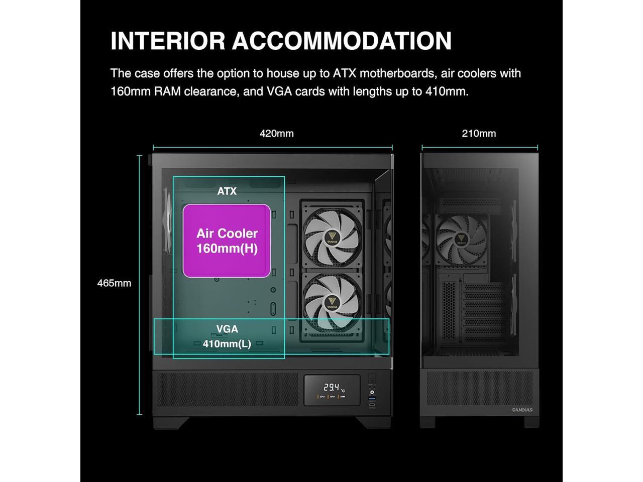 Gamdias ATLAS M1 CPU/GPU Temperature Display, ATX Tempered Glass PC Case, Built-in 3X 120mm ARGB PWM Fans, fits: GPU 410mm, and 360mm AIO/Radiator