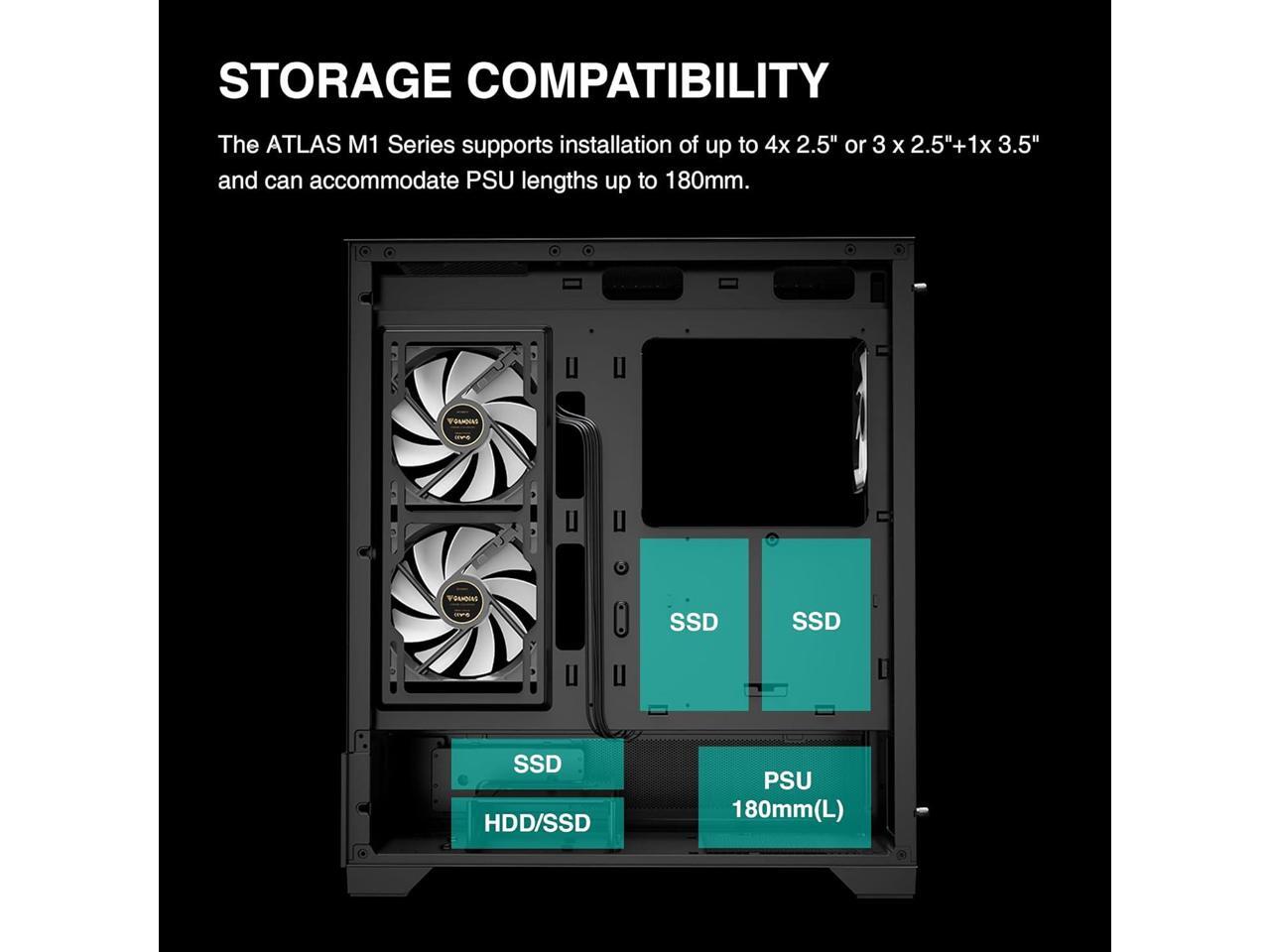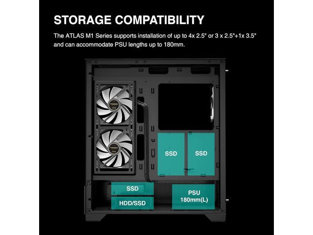 - Fits Mini-ITX, Micro-ATX and ATX motherboards