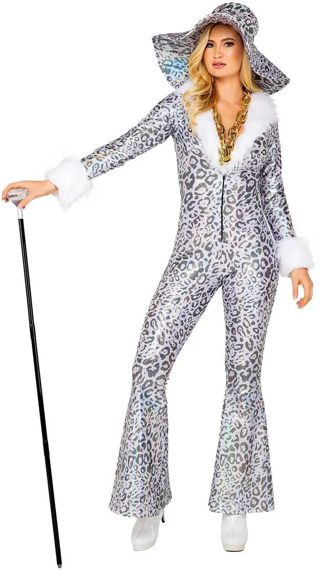 DescriptionRoma's 2pc Money Trap Diva Costume Features a Longsleeve Bodysuit with Faux Fur Trim and a Front Zipper. Includes a Matching Hat. NOTE*** the Cane and/or Gold Chain are NOT Included