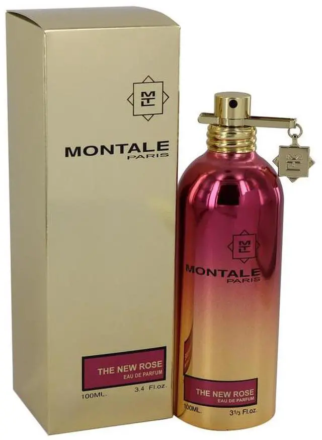 : br Originally released by Montale Paris in 2016, Montale The New Rose is a fresh and fruity floral oriental composition with that leaves a deliciously warm, seductive trail. Effusive citrus and fruit tones open the scent, mingling Italian lemon, ripe peach and tart-sweet black currant with delicate raspberry nuances. Lovely Bulgarian rose emerges in the heart notes, along with heady accords of lily-of-the-valley and banana-toned ylang-ylang.