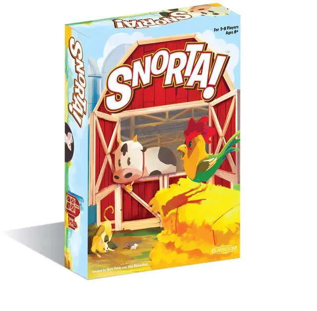 pGet ready for laughter as your friends and family suddenly start sounding like they were born in a barn! In Snorta!, each player is given a barn card with their secret animal on it and a hand of animal cards. When a card placed down matches one of the cards already on the table, those two players rush to say the animal sound of the other player, not the sound of the animal on the card. If you say the other player's sound first, you give them all the cards you've flipped onto the table in front of you.