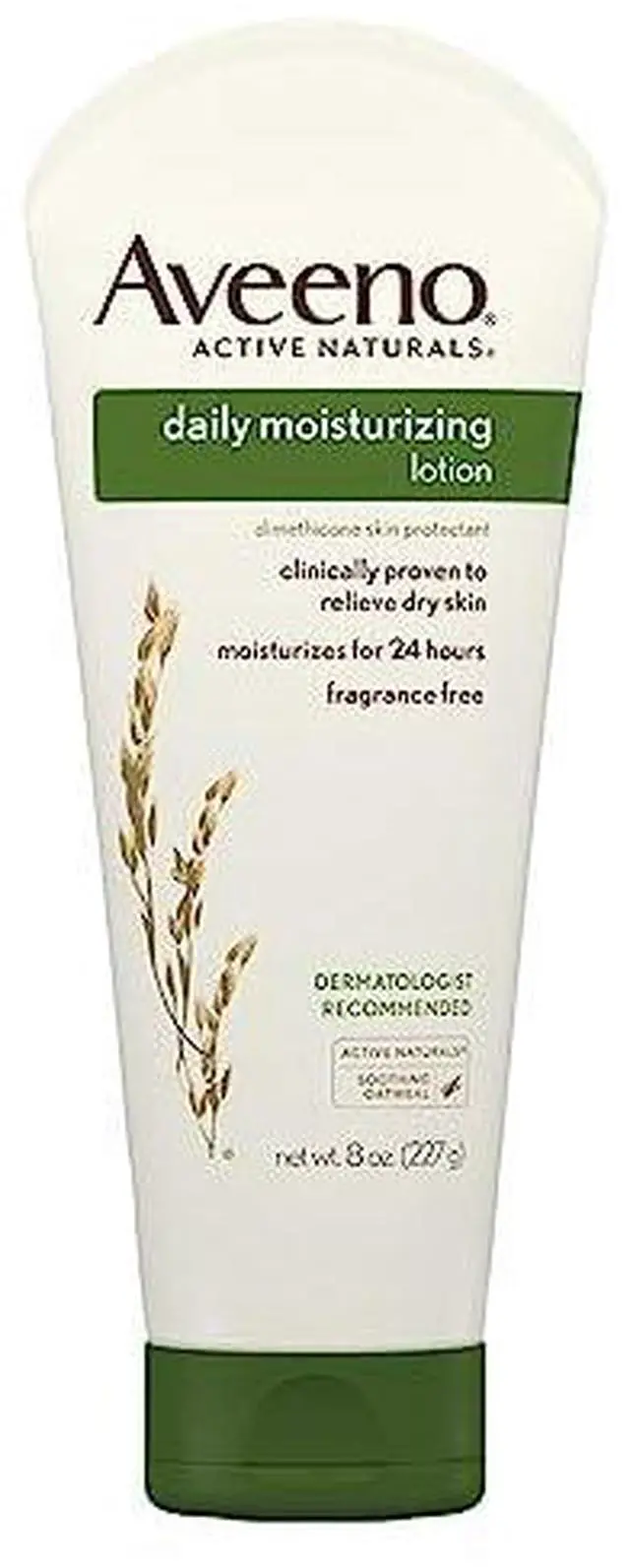 Product DescriptionAveeno Daily Moisturizing Body Lotion with Prebiotic Oat formula intensely nourishes dry skin. Formulated with a soothing prebiotic oat, the fragrance-free lotion has clinically proven moisturization that lasts 24 hours. This daily body lotion nourishes and helps replenish skin's natural moisture barrier. The unique prebiotic oat formula absorbs quickly and nourishes dry skin with moisture, leaving your skin soft, beautiful and healthy-looking. Aveeno Daily Moisturizing Lotion's gentle formula does not contain fragrances, parabens, or dyes. From the dermatologist-recommended brand, this nourishing lotion for dry skin has been allergy tested and non-greasy, non-comedogenic, and gentle enough for daily use as part of a regular skincare and beauty routine.