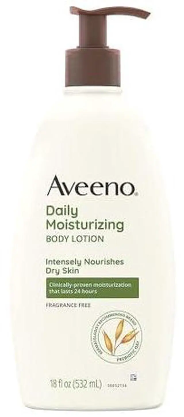 Aveeno Daily Moisturizing Body Lotion is a fragrance-free, non-greasy solution for dry, irritated skin. Its unique formula with colloidal oatmeal and rich emollients delivers noticeable relief in just 24 hours, leaving skin feeling soft and smooth.