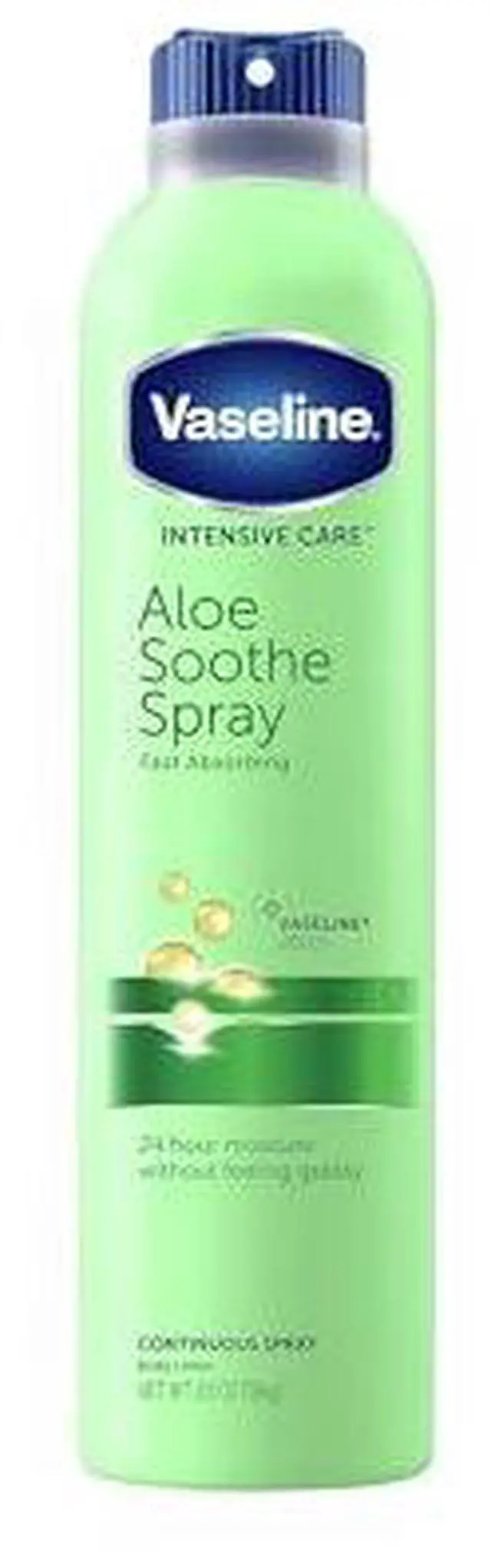From the ManufacturerContinuous spray lotion moisturizes deeply and absorbs in seconds. view largerVaseline Spray & Go Moisturizer is a quick and convenient continuous spray lotion that moisturizes deeply and absorbs in seconds so you can put your clothes right on. Skin will feel instantly soft--not sticky or greasy. To apply, simply hold the can four inches from your skin and spray up one leg and arm, switch hands and spray down the other side and finish by quickly rubbing in. The Aloe Fresh formula of Vaseline Spray & Go Moisturizer contains pure aloe and leaves skin feeling healthy and fresh.