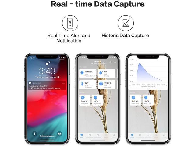 - REMOTE MONITORING: When the room temperature reaches above or below a certain threshold, the Aqara Temperature and Humidity Sensor can send a push alert to your phone or trigger the Aqara Hub night light.