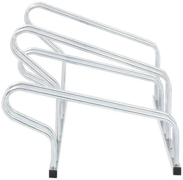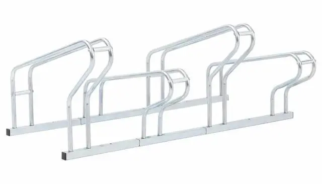 Space-saving: This bicycle stand has a high-low wheel design and accommodates four bikes without handlebar tangling, optimizing space for efficient parking.