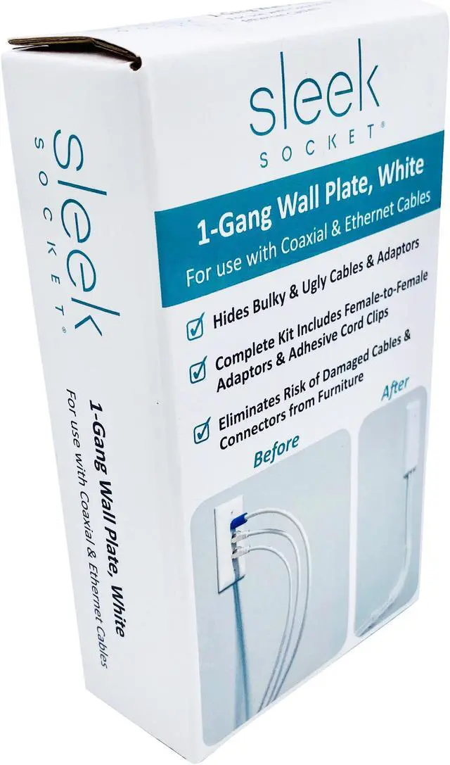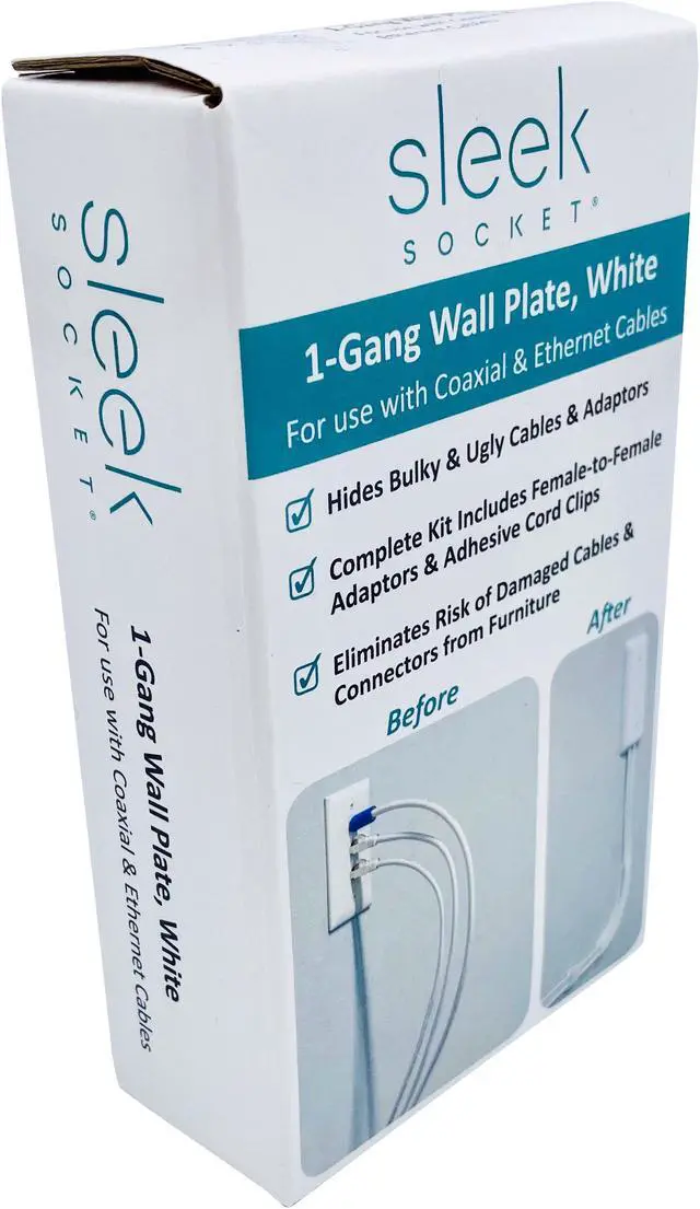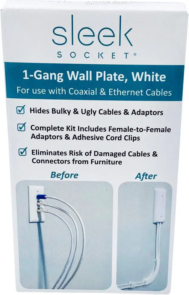 ELIMINATE UGLY PLUGS & ADAPTERS and restore your home’s pristine decor. This slim, wall-hugging device blends into its surroundings for an uncluttered, wireless look. USE MORE OF THE ROOM – up to 90% thinner than traditional plugs & cords and thinner than most baseboards. Sofas, tables and entertainment centers can now sit flush against the wall. ELIMINATE RISK OF DAMAGE to cables & connectors from furniture VIRTUALLY INVISIBLE because it blends into the wall. You'll forget its even there! COMPLETE KIT INCLUDES 1-Gang Wall Plate (White), 1 Female-to-Female Coaxial Adapter, 2 Female-to-Female Ethernet Adapters & Multi-Cable Adhesive Clips