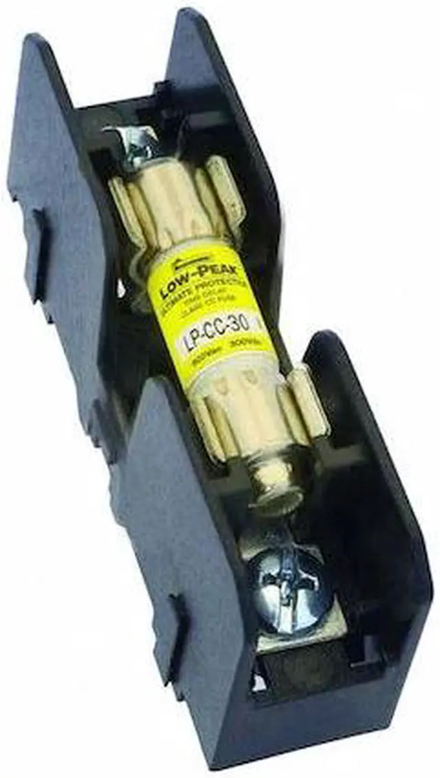 Fuse Block, Fits Fuse Type Class CC, Fuse UL Class CC, 0 to 30 A, Number of Poles 1, 600V AC/DC, For Fuse Size 1 1/2 in L x 13/32 in dia, Compatible Fuse Series ATDR, ATMR, ATQR, CCMR, FNQ-R, KLDR, KLKR, KTK-R, LP-CC, Series BCM, Non-Indicating, Rejection, Fuse Block Design Open, Wire Range 18 to 10 AWG, Mounting Style Bolt-Down, DIN Rail, Body Material Thermoplastic, Connector Type Pressure Plate, Quick Connect, Height 1.3 in, Width 0.8 in, Length 3 in, Features Optional Cover and Indication