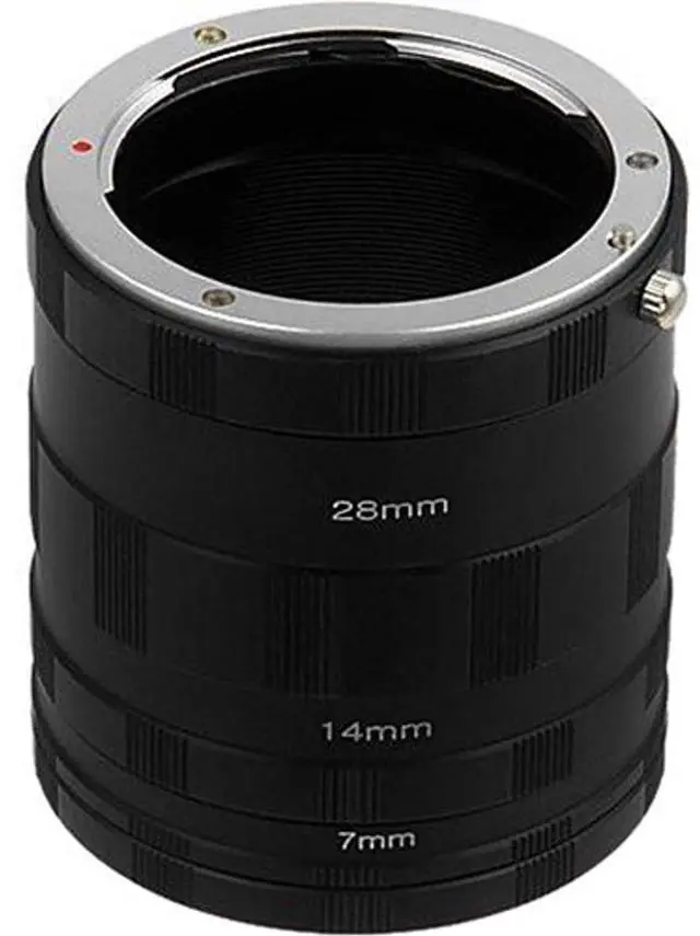 This is an affordable and simple way to turn your existing lens into a MACRO LENS. This tube set includes a lens-coupling ring and a body-coupling ring; three extension tubes of various sizes are also included to build up to the desired magnification. Life size image can be achieved with this set up. See details specification at the table below. Specs are based on a 50mm f 1.4 lens. Compatible Cameras (including but not limited to) Sony Alpha a7 a7r a7s a7II a7rII a3000 a5000 a6000 a3500 a5100 aQX1 PXW-FS7 NEX-3 NEX-5 NEX-C3 NEX-5N NEX-7 NEX-F3 NEX-5R NEX-6 NEX-VG10 NEX-VG20 NEX-VG30 NEX-VG900 NEX-FS100 NEX-FS700 NEX-EA50The extension ring set has no electrical contact so you will have to set your camera in manual focusing and manual exposure or aperture priority mode for metering.