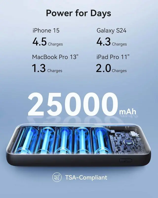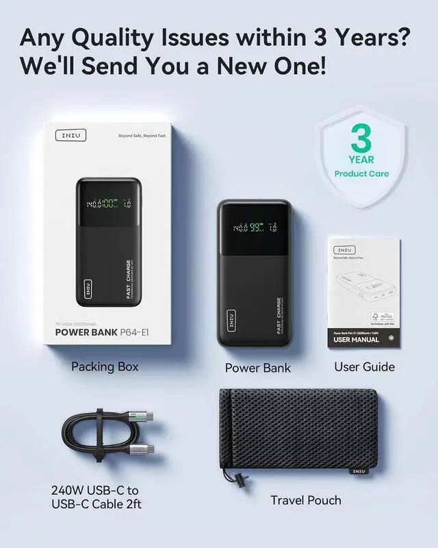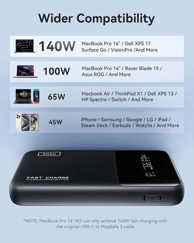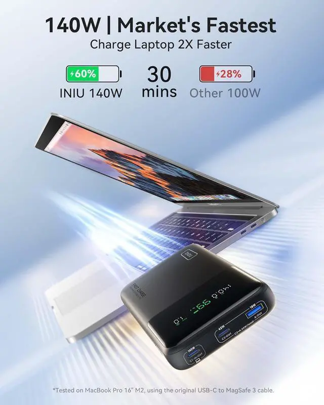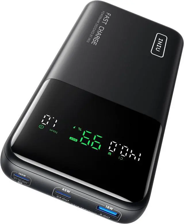 Charge 3 at Once: With 3 charging ports, including a blazing-fast PD 3.1 140W USB-C in/out port, a PD 45W USB-C fast charging port, and a trusty USB-A port, this power bank is your all-in-one charging solution. It works seamlessly with various cable types, ensuring rapid charging for all your devices.