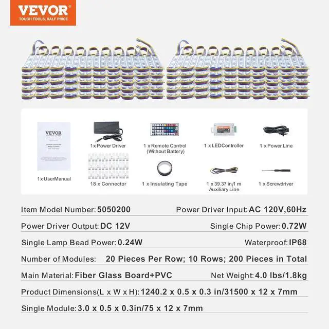 Our LED module lights feature 5050 SMD LED chips, offering a wide 160-degree illumination for broader coverage. Each module light contains 3 LED bulbs and can be controlled via remote to choose from 20 different color modes. Illuminate your storefront with versatile lighting!