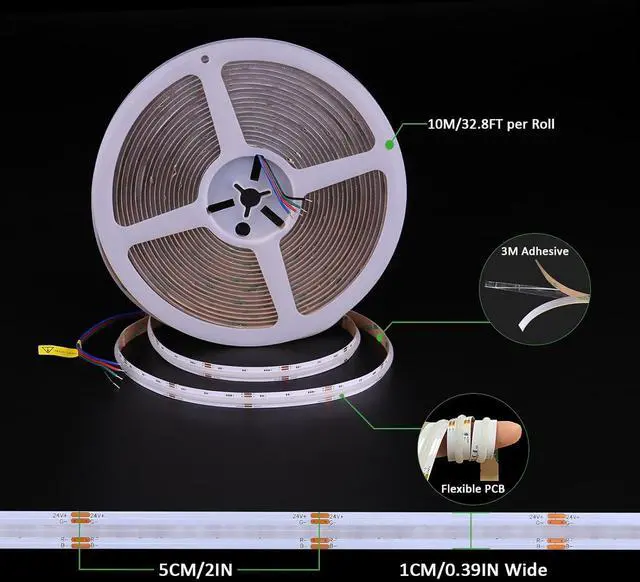 [ Cuttable & Re-connectable ]: You can cut the light strip every 2IN/5CM please cut at the cutting place, and re-connecting by using 4PIN 10MM rgb led strip connectors or soldering wires. Also the COB LED strip is more flexible than the SMD one, easy to DIY.