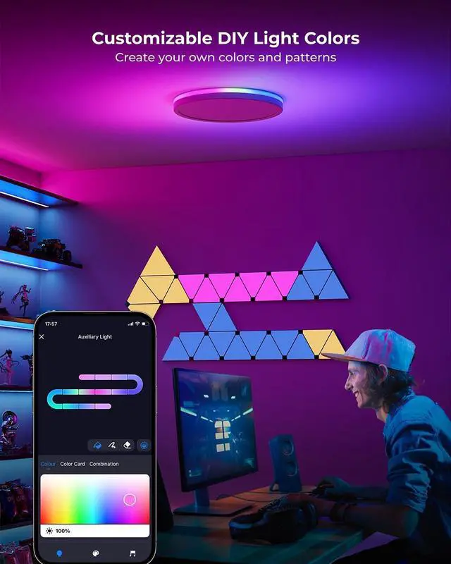 Music Sync Feature: Elevate your entertainment with lighting that syncs to any music genre. Whether watching movies, hosting parties, or gaming, the ceiling light will dynamically change with the beat of the music.