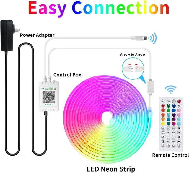LED Neon Light Bar Set: 1), 1*50ft LED Neon strip Lights 2, 1*24V1A Power Supply, 45* Snap *45 Screws, 1* Controller, 1*