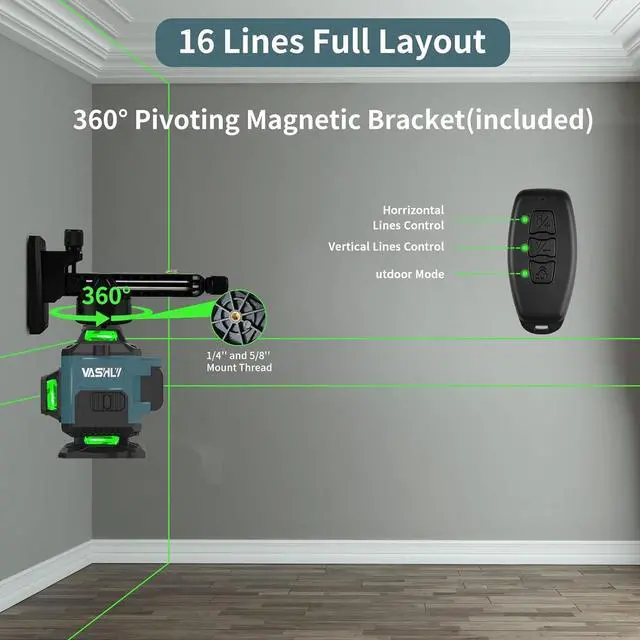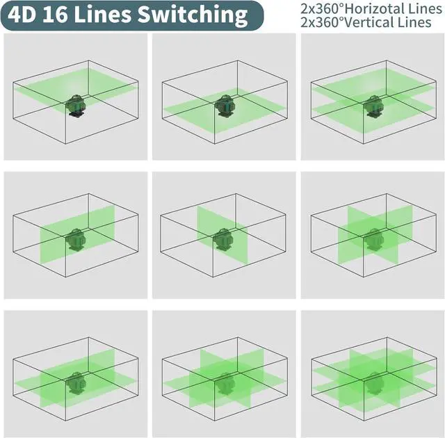 IP54 Protection & Wide Range of ApplicationsSelf leveling laser level is made of double-layer ABS, which is portable and convenient for outdoor use. 360 laser level has the advantages of being waterproof, dustproof, and drop and wear-resistant. It can be used for indoor applications such as shop decoration, drywall, partition wall, suspended ceiling, and ceramic tiles.